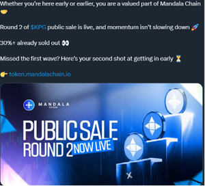 DENPASAR, Indonesia, Oct. 08, 2025 (GLOBE NEWSWIRE) -- Mandala Chain’s $KPG token presale has surpassed the $2.3 million fundraising milestone in Round 2, signaling growing investor confidence in the project’s Polkadot-based blockchain infrastructure. With over 30% of Round 2 tokens already sold at $0.027 each, analysts are highlighting Mandala Chain as one of the most promising projects in the Polkadot ecosystem heading into 2026. The strong early demand underscores both the momentum behind $KPG and the rising interest in scalable blockchain solutions.